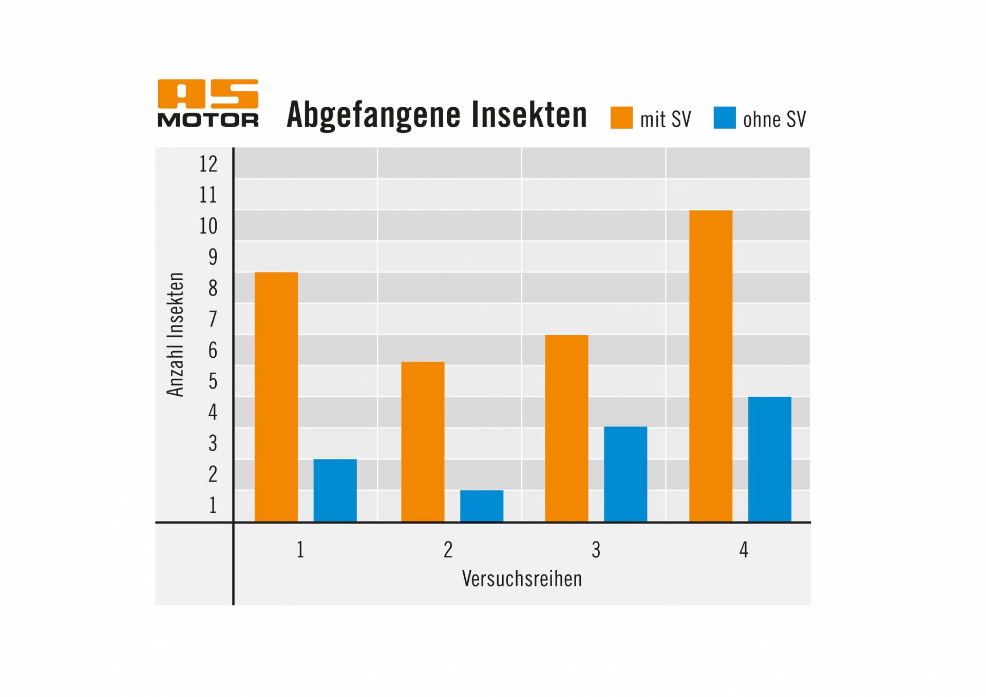 In cooperation with the Institute of Agricultural Engineering at the University of Hohenheim, various trials were carried out which, among other things, confirmed the benefits of the Scheuch device. The first trial was carried out with an AS 63 all-mower as the carrier vehicle. In order to ensure that the results are reliable, comparative runs were carried out with and without the scaring device in several repetitions. The number of insects flushed out was determined by means of a catch basket attached to the device. The result clearly shows the benefit of the device. During the trials, about three times as many insects were flushed out with the flushing device (compared to the trials without the flushing device) and thus moved out of the danger zone of the mower. Further trials with dummy insects suggest that the survival rate of insects can be increased by using single blades in combination with a higher cut.