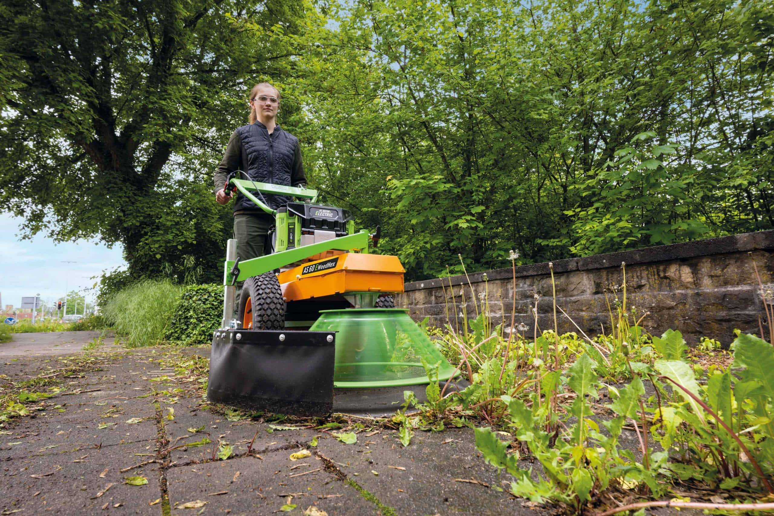 Cobblestones and uneven paved areas can be treated for weeds, without the use of chemicals, using mechanical methods. The agile AS 30 is designed for work close to edges, water inlet channels, manholes and on traffic islands with posts and signs.
